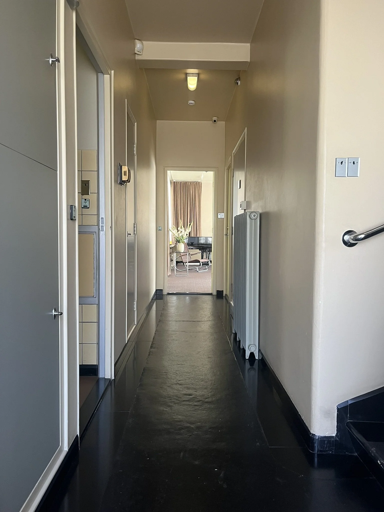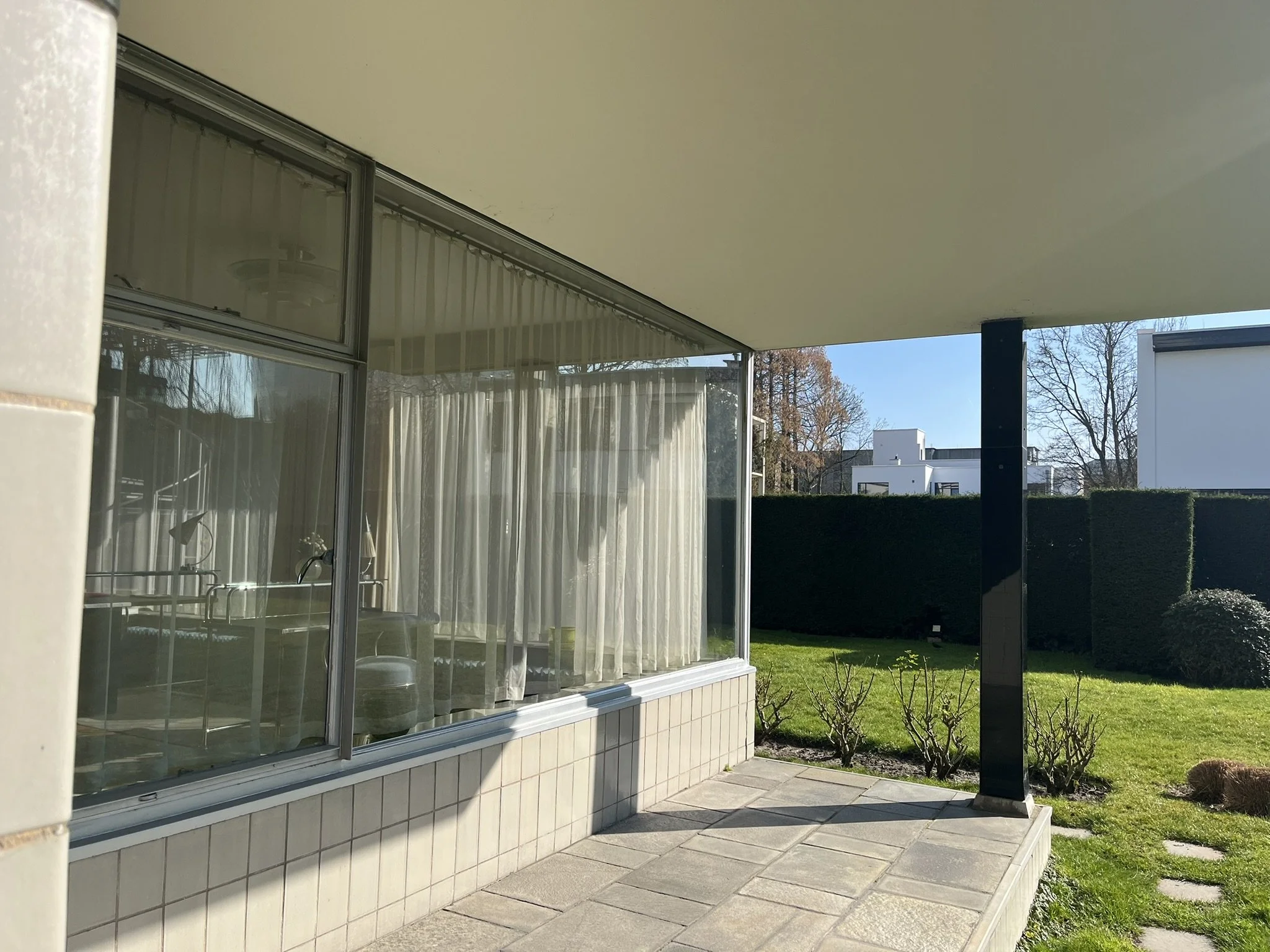 The house was built on the principles of the Nieuwe Bouwen: light, air and space for the benefit of hygiene and health. Almost all rooms have access to a balcony and the house is placed in against the northern edge of the plot, receiving as much natural sunlight in the garden as possible. It is hygienic because of the many spacious bathrooms, ventilation systems and use of tiles in traffic areas.