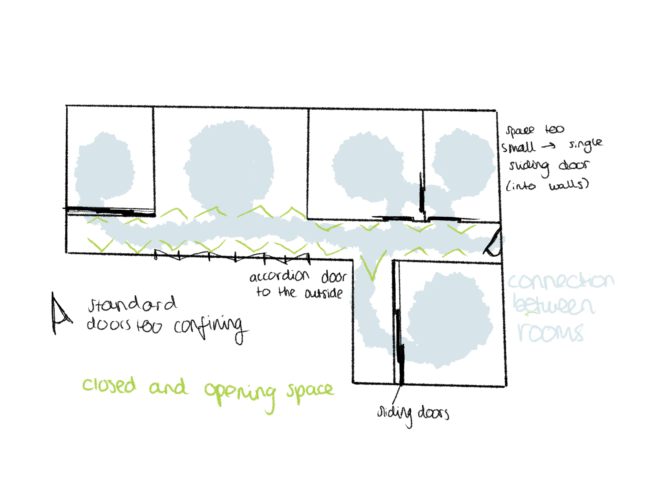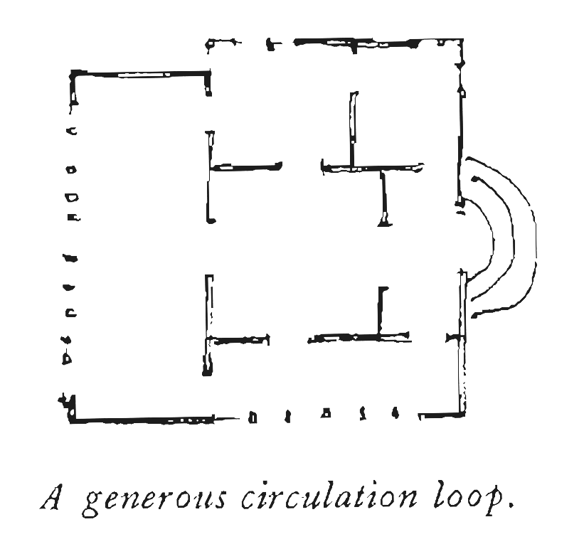 ‘The movement between rooms is as important as the rooms themselves; and its arrangement has as much effect on social interactions in the rooms, as the interiors of the rooms.’