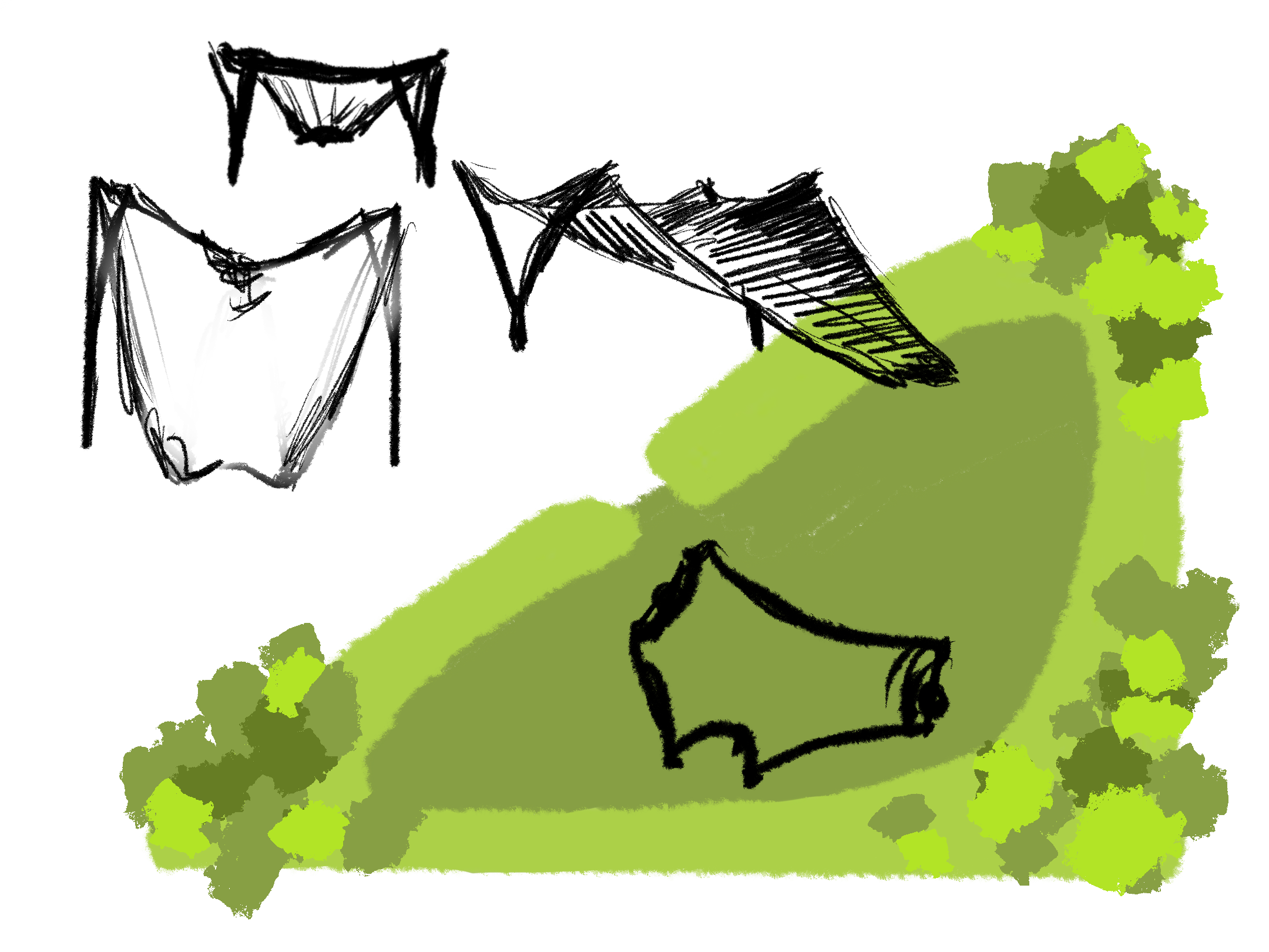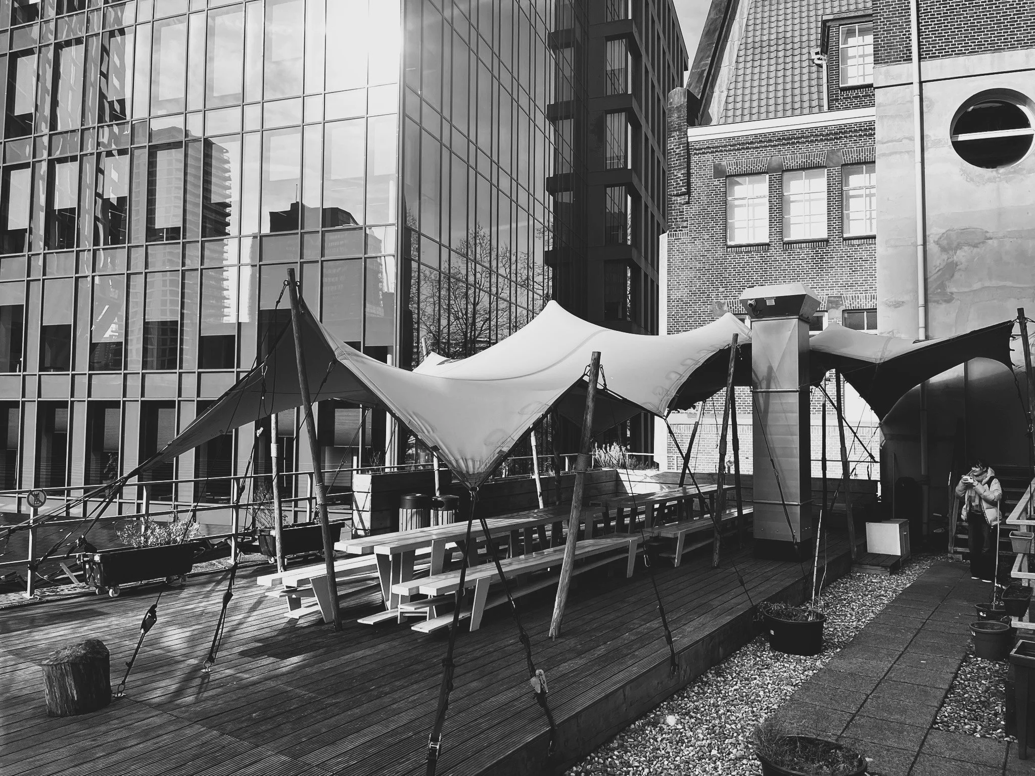 I chose the canvas structure on the WDKA roof as a reference because it strikes the perfect balance between stability, flexibility, and aesthetics, all things I want in my own design. The tensioned fabric system is lightweight but strong, supported by wooden poles and guy ropes that keep it secure without needing a bulky frame. What really stood out to me is how it creates a comfortable, shaded space while still feeling open and inviting, ideal for social gatherings or a rooftop setting. I think this is an easy way to provide solutions in a sustainable and modular way.